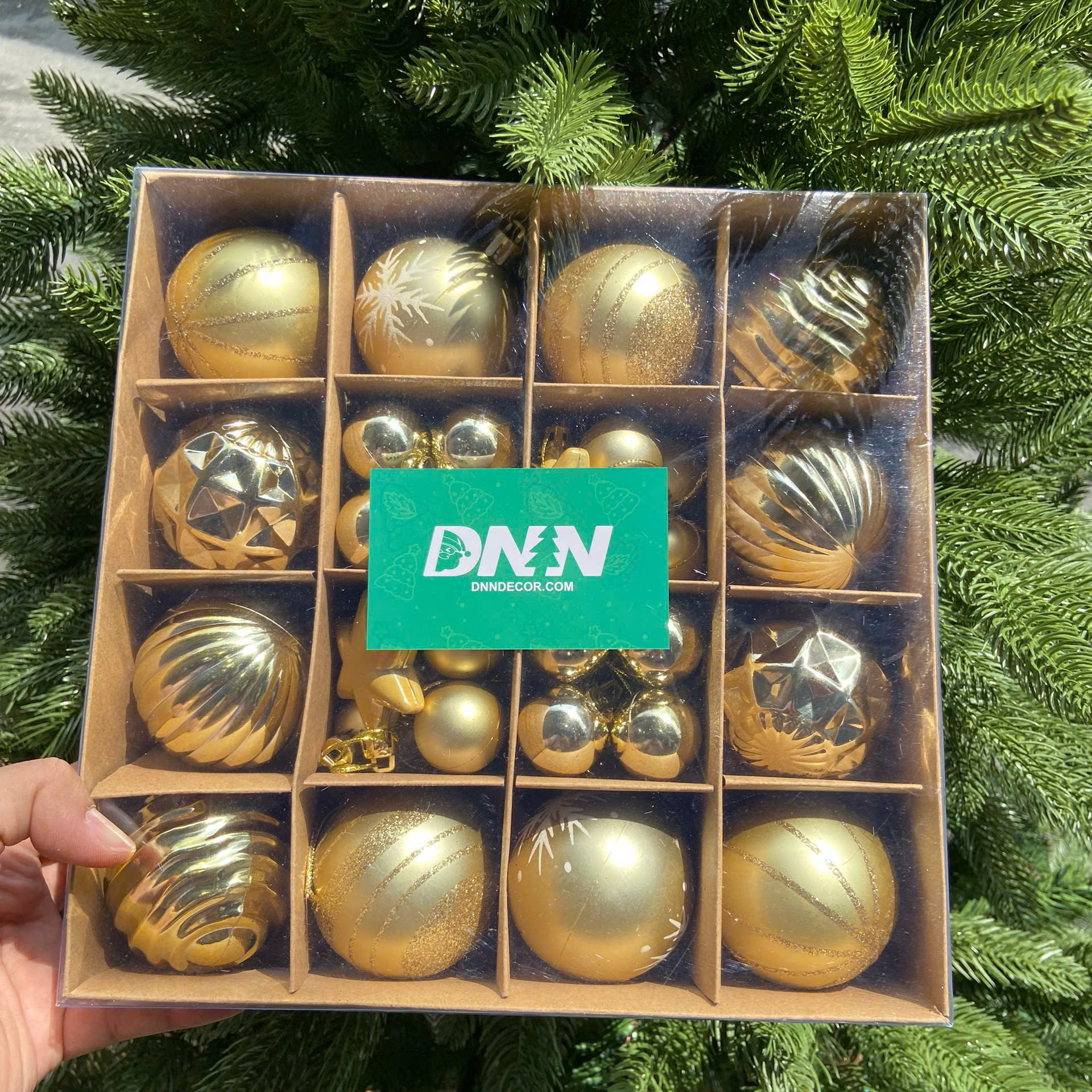 Hộp châu trang trí noel gồm 42 phụ kiện châu mix đủ kiểu size 3cm-6cm hàng nhập màu đỏ - vàng