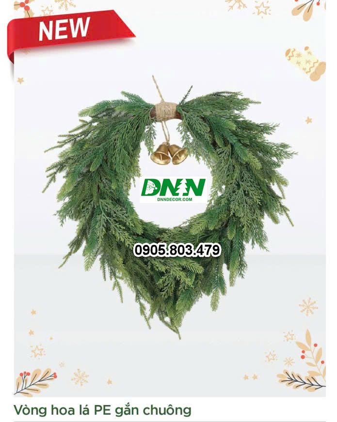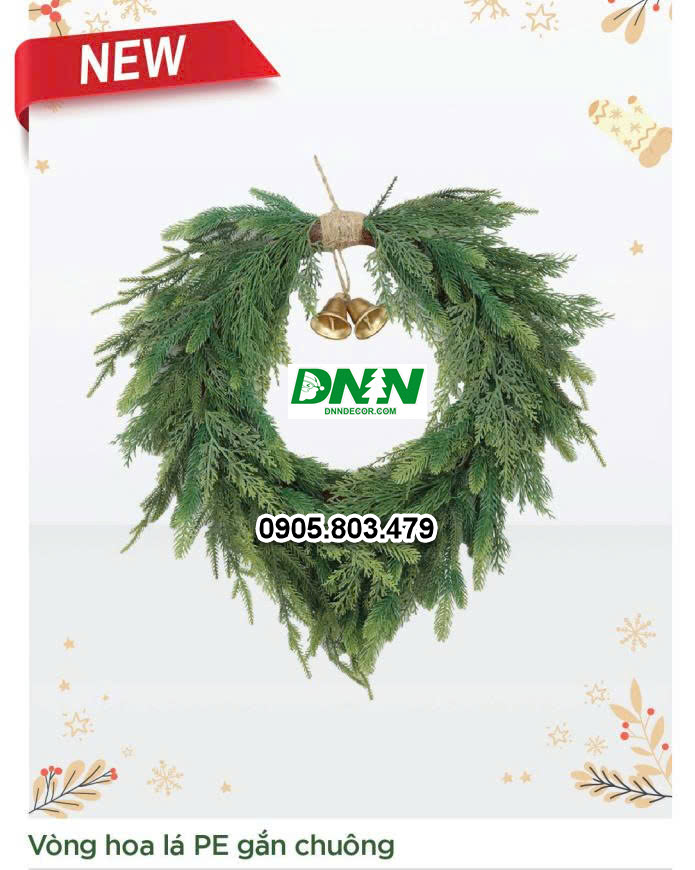 Trang chủ / VÒNG HOA LÁ PE CÓ GẮN CHUÔNG TRANG TRÍ 55CM